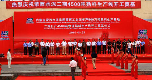 基儀式由蒙西水泥集團執(zhí)行董事兼副總裁賈恒昌主持。蒙西水泥集團總裁葉向東、蒙西集團公司總裁孫建國、鄂托克旗旗長尚志強、鄂爾多斯市政協(xié)副主席劉桂花先