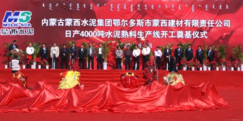 9月28日上午,鄂爾多斯市蒙西建材公司鮮花怒放、鑼鼓喧天,日產(chǎn)4000噸水泥熟料生產(chǎn)線開工奠基儀式在這里隆重舉行。
